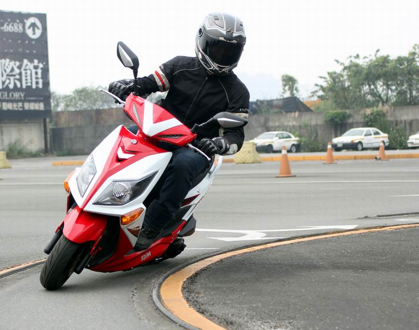 我個人覺得三陽在各種車系當中,十吋輪圈的車款表現一直都是整個廠牌當中最棒的:從古早前的JET 50、高手100、RX110 到前幾年新出的GT125 系列在操控與動力表現上都有一定的水準。而這台Jet Power EVO 也承襲了以上三陽優質的設計。本次試駕的部份全部都是在駕訓場地中進行的,Jet Power EVO 在場地中進行的各種測試均有相當優異的表現。