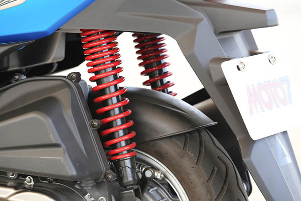 BON 125 雖是入門車款,但用料毫不馬虎,車架鋼管比同級車厚15%,可減少因受力不均而變型的情況。後懸吊搭配運動車款才有的雙槍設計,並且具備預載可調五段可調,讓不同體重車主,或是雙載情況下都能有最好的表現。