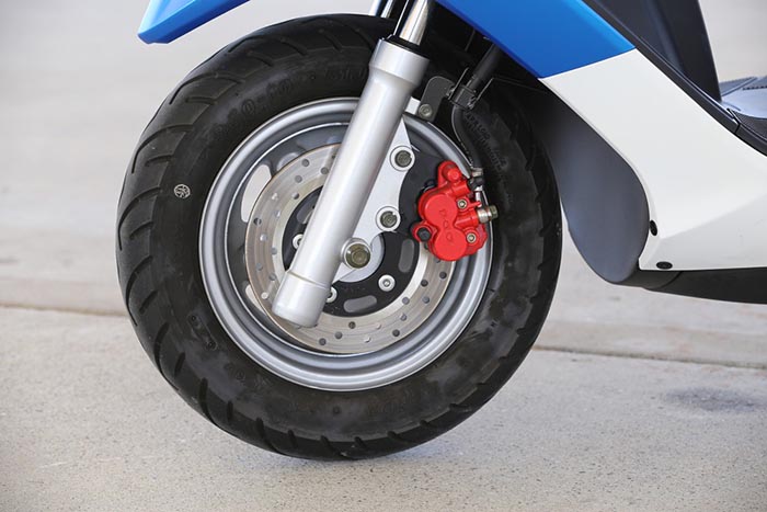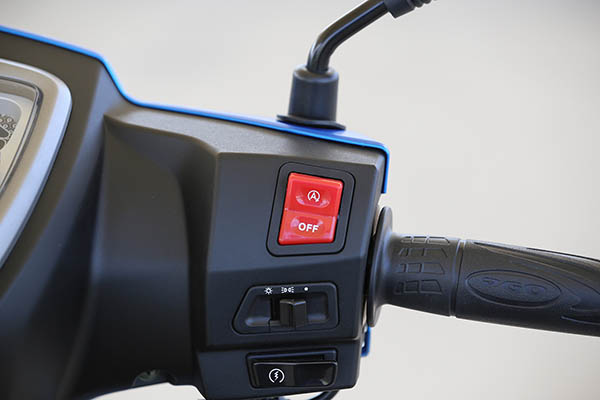 當燈號轉綠準備出發,只需輕扣煞車扭下油門,啟動馬達立刻作動。或是也可以直接按壓電發鈕來發動引擎。