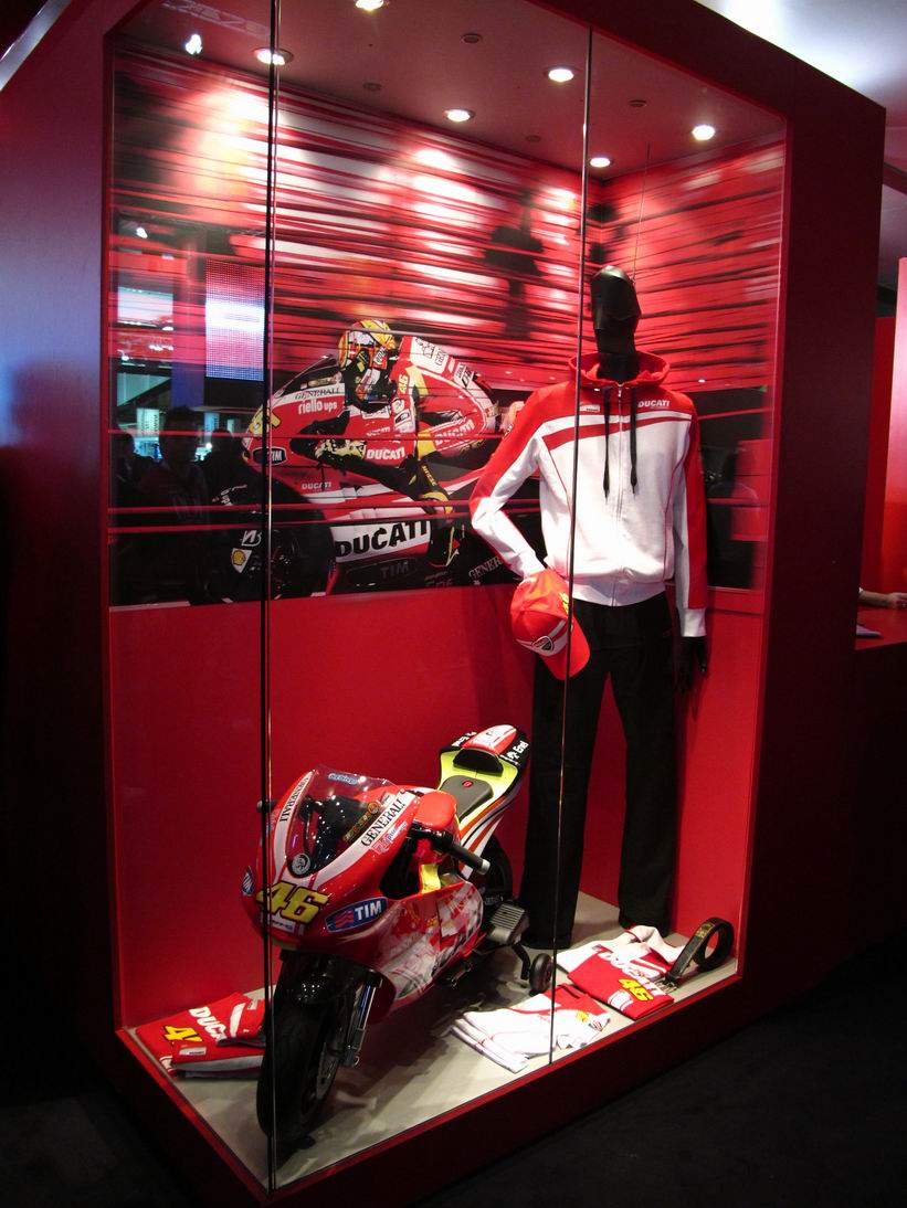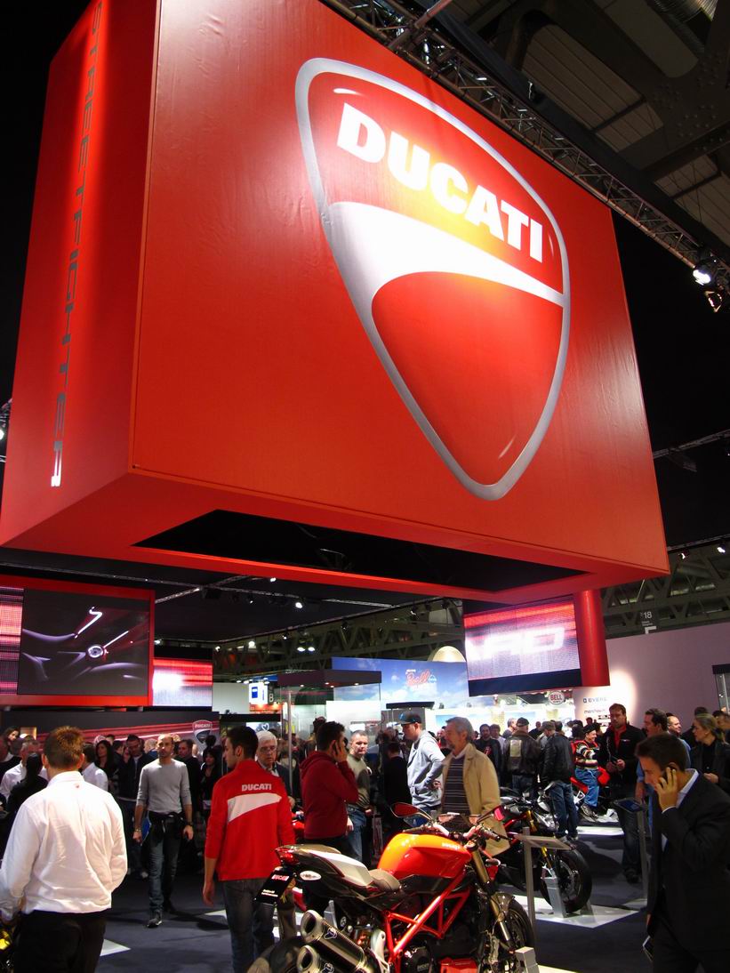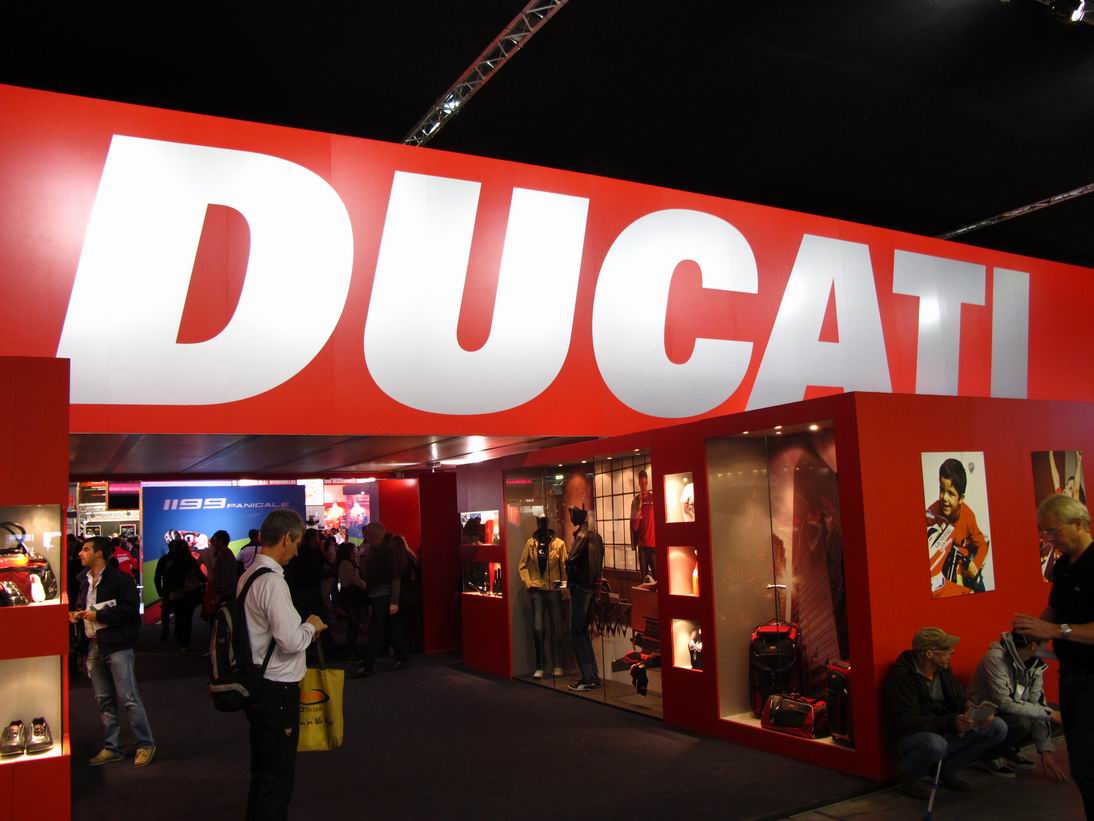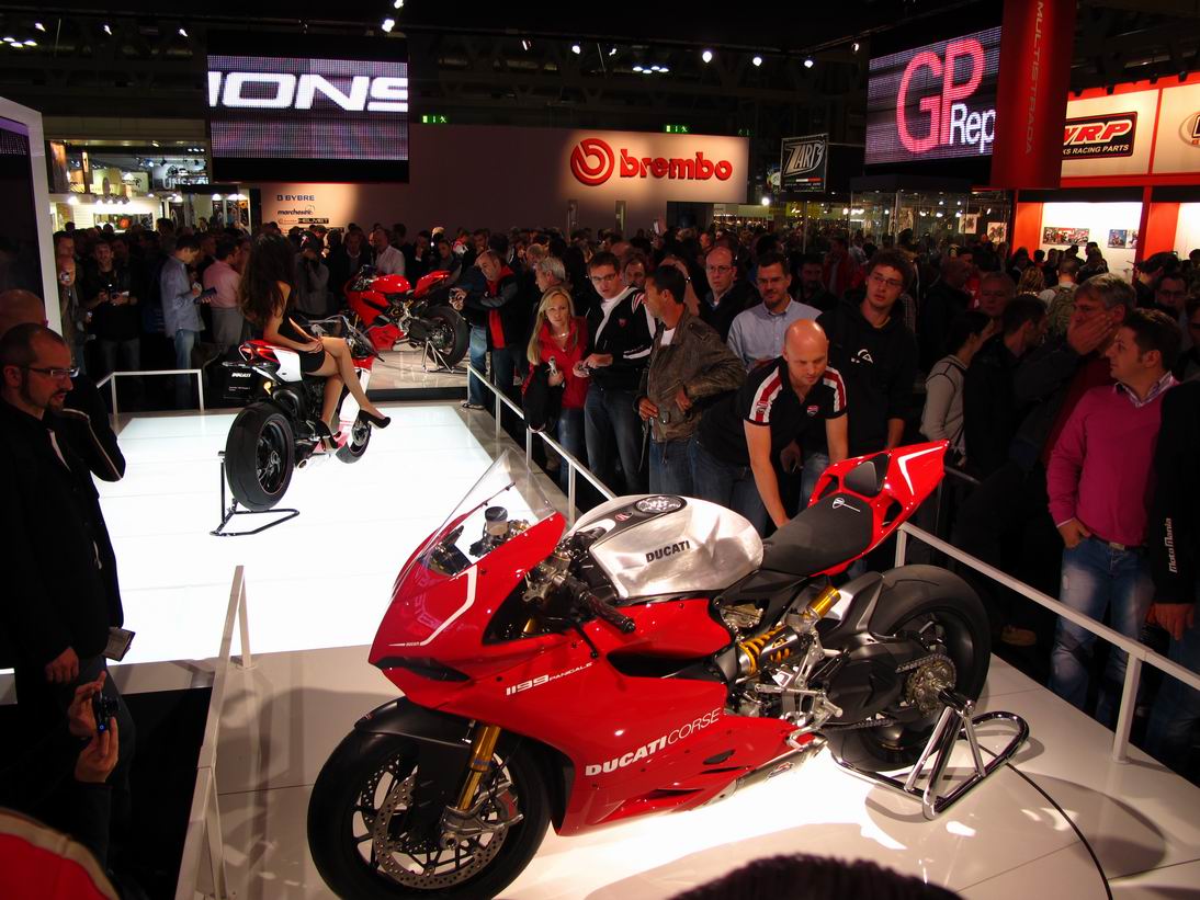 DUCATI 已經在開展的前一日舉辦了新車發表,因此在展場並沒有其他活動,但依然可以說是整個會場中,人氣最旺的攤位。所有的目光焦點當然還是在新車1199 Panigale 上,一同來看看攤位的氣氛: