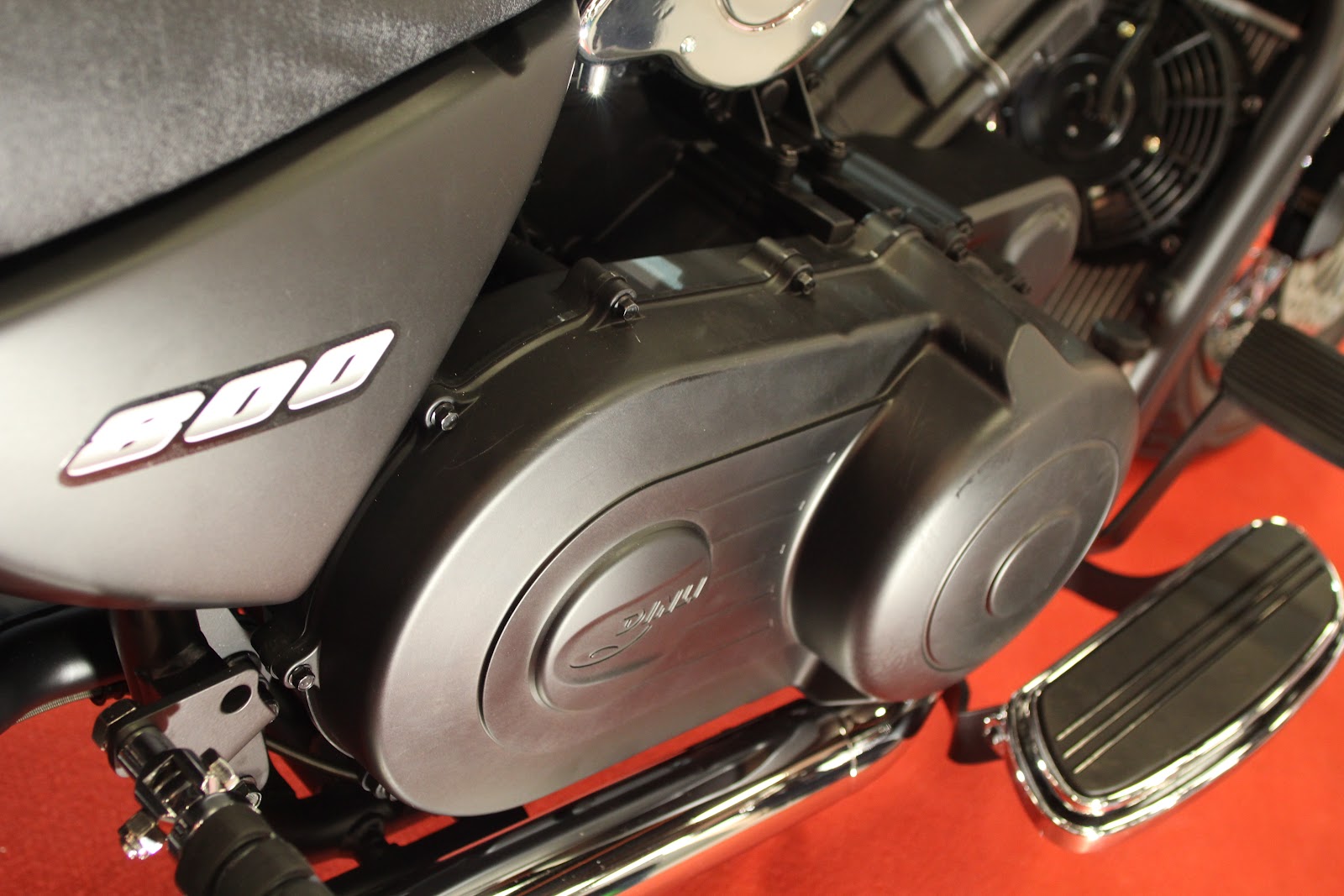 詳細了解本車設計:動力自曲軸輸出後經過兩次減速由離心式離合器進入CVT 系統,再由哈雷慣用的齒型皮帶傳動至後輪。為了避免車輛發動後,低轉的大動力輸出會使離心式離合器略微接合而導致騎士牽不動車,因此仍有空檔的設計,只是操作時不需要離合器,但需要按著煞車才能操作檔位(安全考量)。