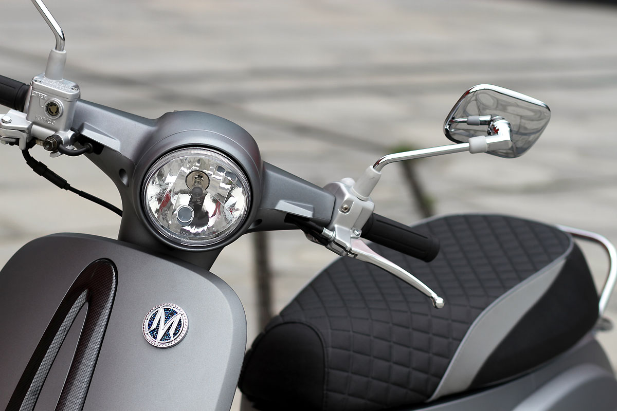 新款MANY 110 水鑽更換舊款水鑽版儀錶板面活潑的配色,採用沉穩、時尚的黑色系,並將水鑽排列重新設計,每顆水鑽都對應一組時速,讓儀錶更有辨識性。今年新款MANY 110 水鑽版也將原本舊款單調的前土除上,增加了施華洛世奇水鑽飾徽,有如高級汽車車頭廠徽一般,大大提高MANY 110 水鑽版的高貴、華麗的感覺。KYMCO MANY 110 水鑽版不只外型亮眼,前輪搭配單向雙活塞卡鉗碟煞系統,面對緊急路況,更能有效煞停,行車更加安全。