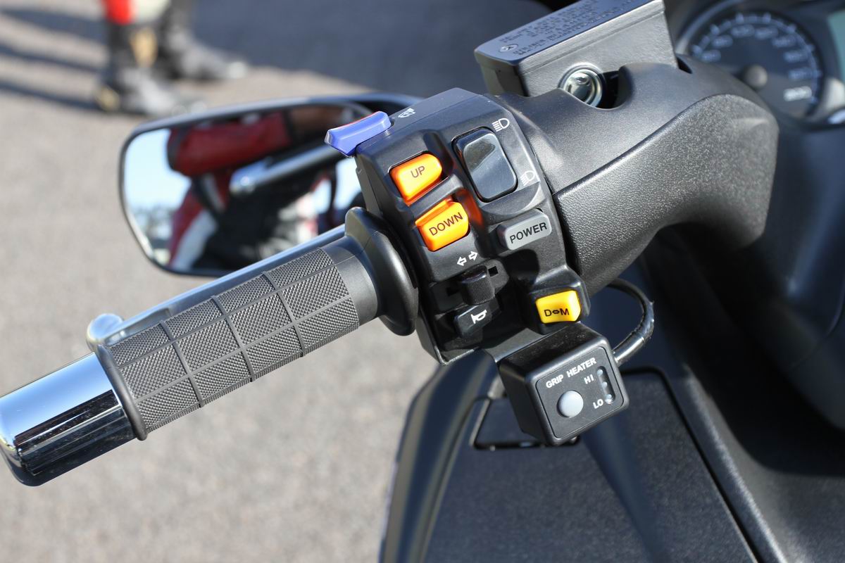 Burgman 650 最具特色的就屬手動換檔功能了,位於左開關上的動力模式分為手動排擋及自排兩種,手排的檔位是靠左手拇指上下撥動升降檔(共六檔)按鈕來控制,所以騎士在這個模式下有相當高的自主性來控制車輛。而自動排檔就屬一般速克達的操作,其下還細分成Drive(一般)和Power(運動)兩種駕駛模式,前者注重的是油耗的經濟性,而後者會刻意延遲升檔,騎乘者可以較高的轉速來操控車輛。