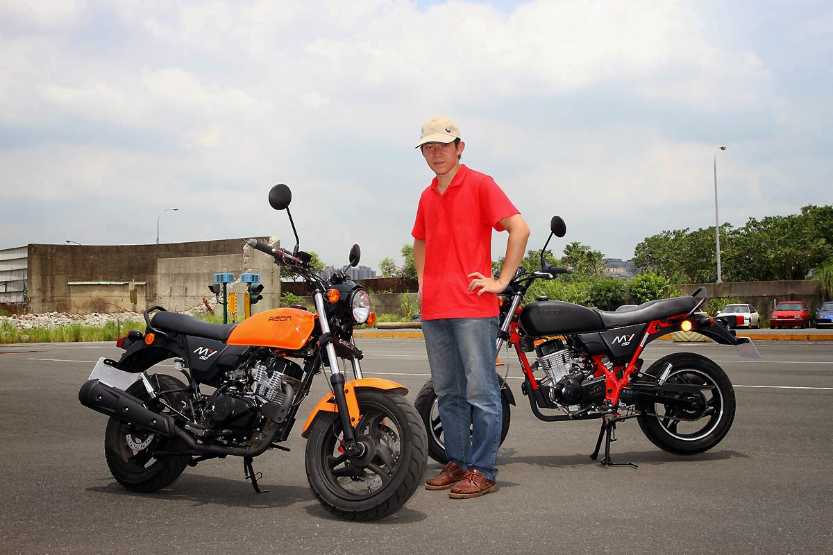AEON MY150 自推出就受到許多車友的喜愛,推出許多車色,包括曠野綠、閃耀白、惹火紅,而這次MOTO7 商借到的分別為酷炫帥氣的消光黑以及亮麗顯眼的亮眼橘。MOTO7 請來筱穎兒參與外拍,不會騎檔車的筱潁兒看到MY 150 的外型深受吸引,一直希望能夠騎看看,於是就由MOTO7 安駕講師小天來為筱潁兒進行一對一的檔車騎乘教學。