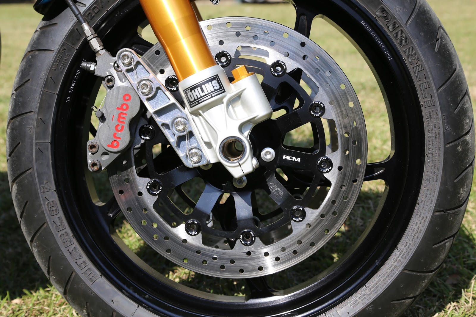 Ohlins 正叉與SUNSTAR 為RCM 開發的浮動碟,黑色內盤則是客戶指定的顏色。