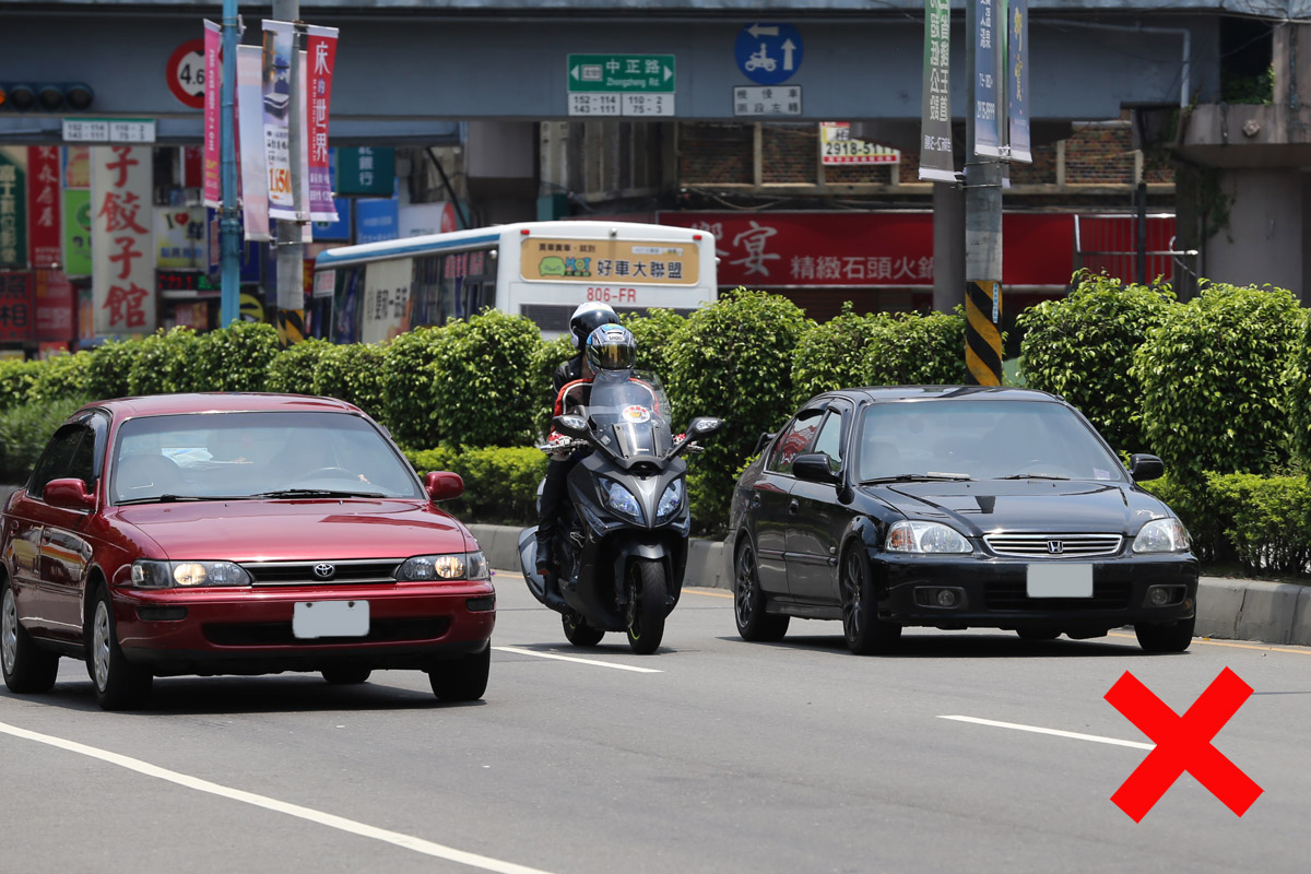 騎乘大羊應避開鑽車縫或是同車道超車。