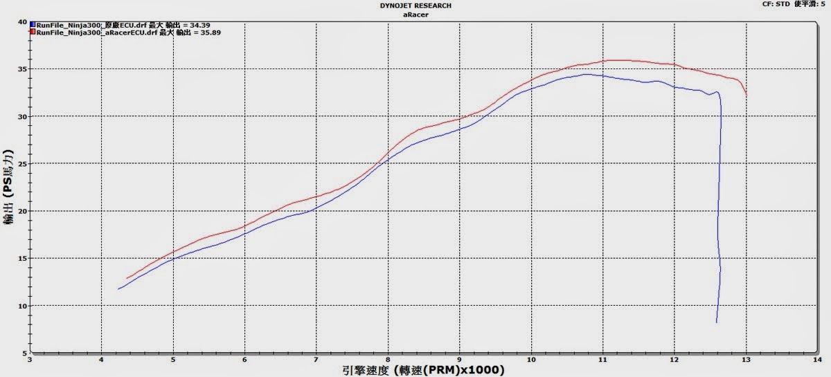 上有何不同呢?這次我們特別藉由測試KAWASAKI 最新黃牌跑車Ninja 300,來看看在安裝RC2 ECU 後,動力與原廠的差別。