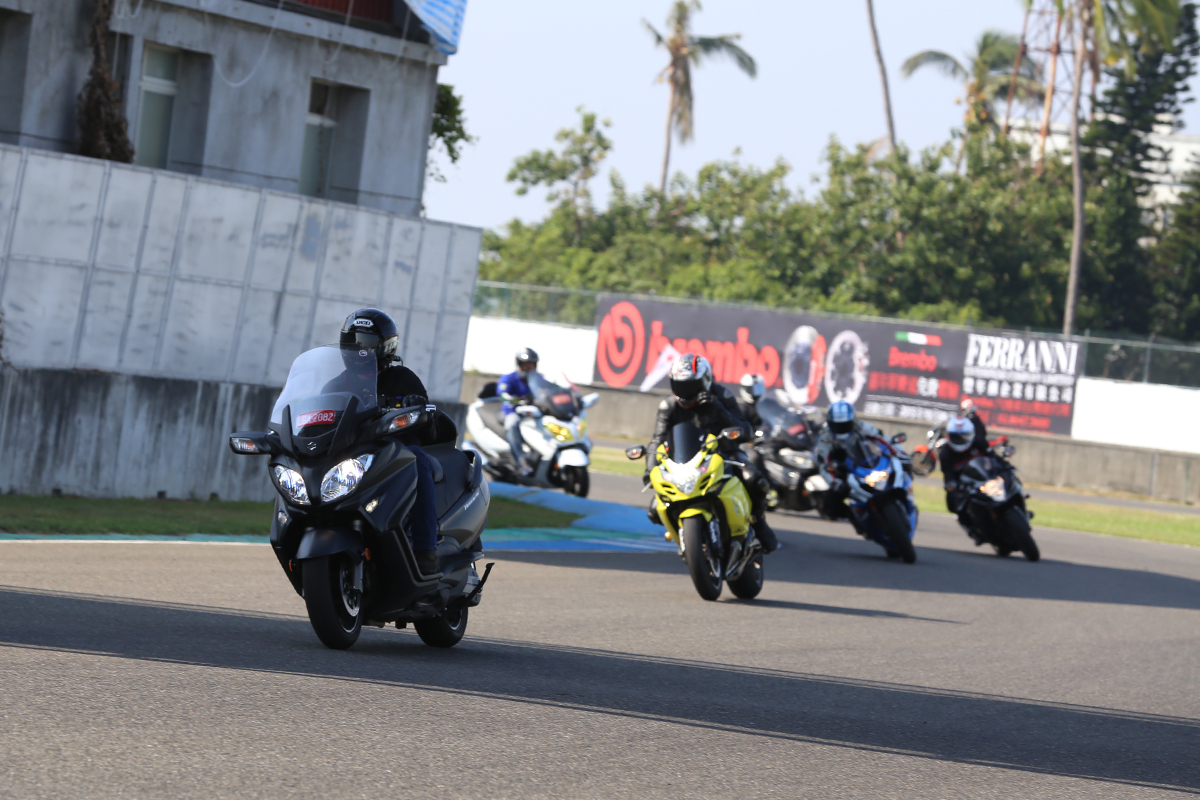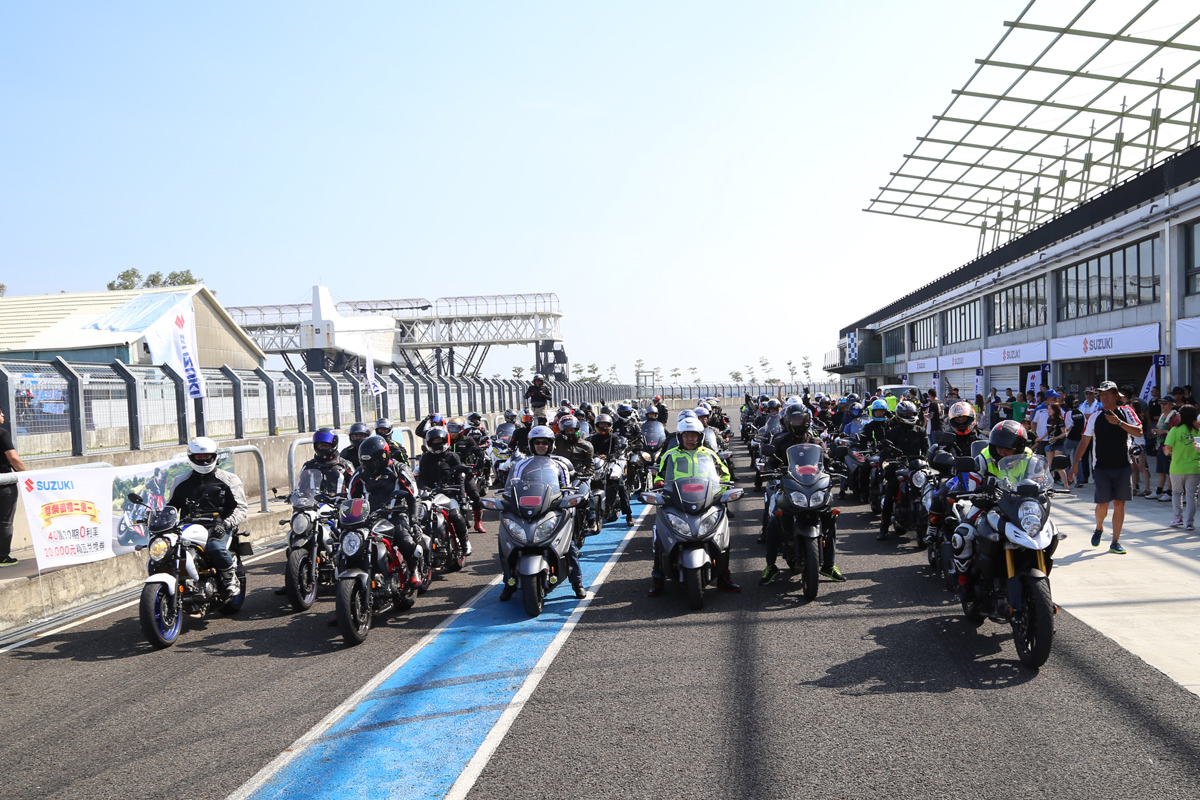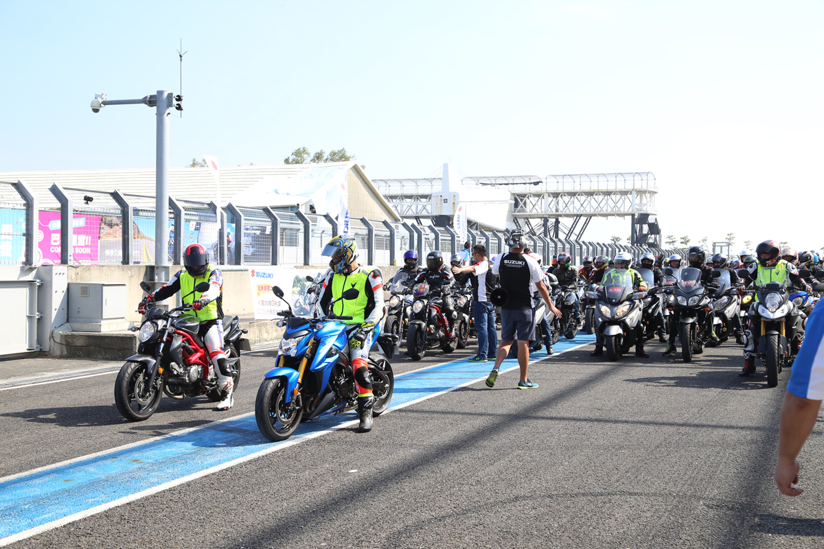 這次的SUZUKI 重返榮耀重車大會師除了在高雄義大舉行與以往類似的會師行程之外,更結合大鵬灣賽車場,除了舉辦南部GSX-S1000、GSX-S1000F、V-Strom 1000 等三台車款的試乘外,在下午也有讓參加大會師的SUZUKI 車友們,騎乘自己的愛車進行賽道繞行體驗。