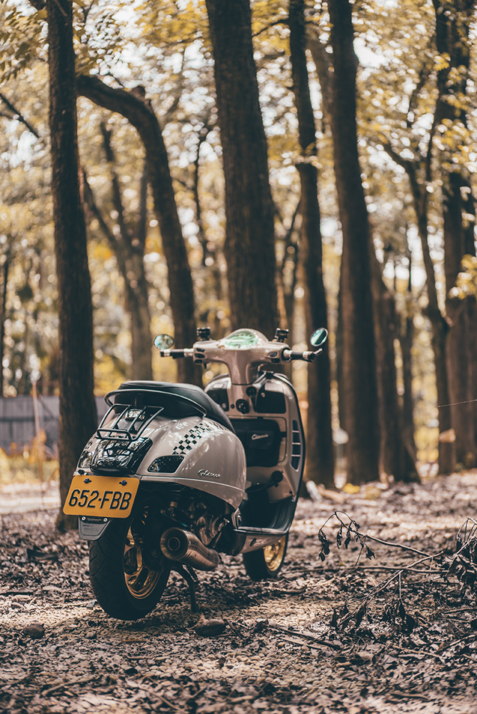 VESPA GTS300 有著黃牌車款的路權與VESPA 自身的藝術般的車體線條,可以說是兼顧實用與品味的車款,在台灣路上,能見度以VESPA 車系中也是較高的。但原廠的車款總是為了大眾與成本做了妥協,經過車主海夫納的改裝後,VESPA GTS300 不但在性能上強化,更以其獨到的審美觀讓VESPA 的特色更加突顯出來。