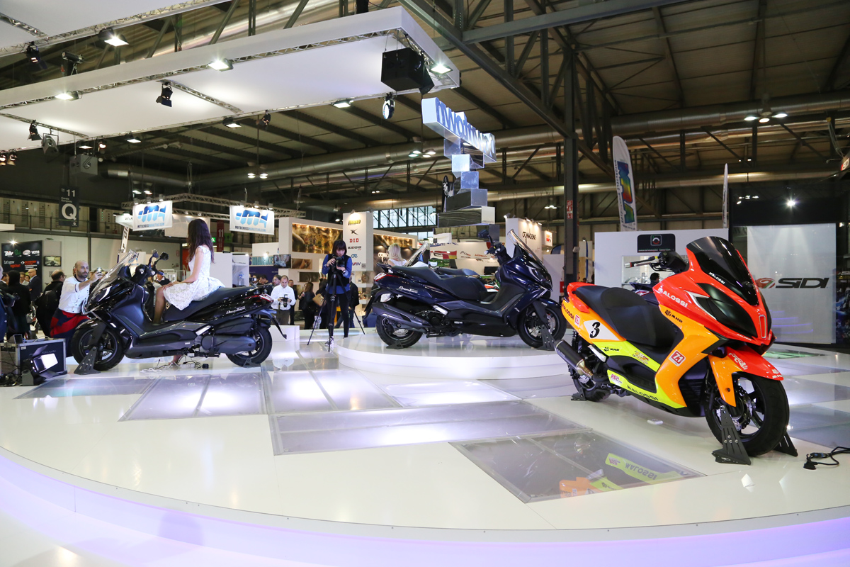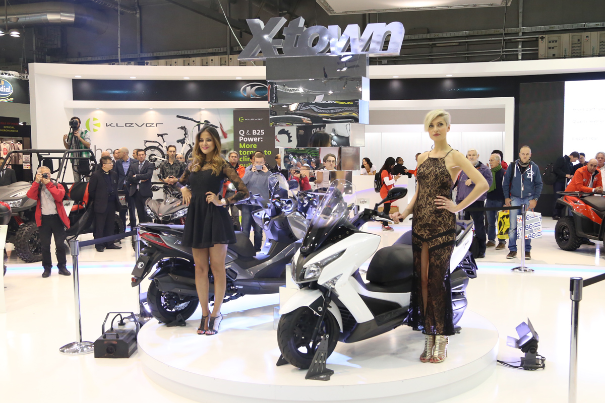 做為全球的機車盛會,在歐洲也有一定市場的國內機車大廠KYMCO 自然也不會缺席,雖然有别於去年50週年廠慶的盛大,但也發表了針對歐洲市場發表兩款後繼車款X-Town 300i與G-Dink 300i。當然去年發表的DownTown 350i 以及 與Oral 合作的Moto3 規格廠車也不會缺席,而之前MOTO7 採訪的MALOSSI 親自改裝的MALOSSI DownTown 350i 更是現場熱點之一。