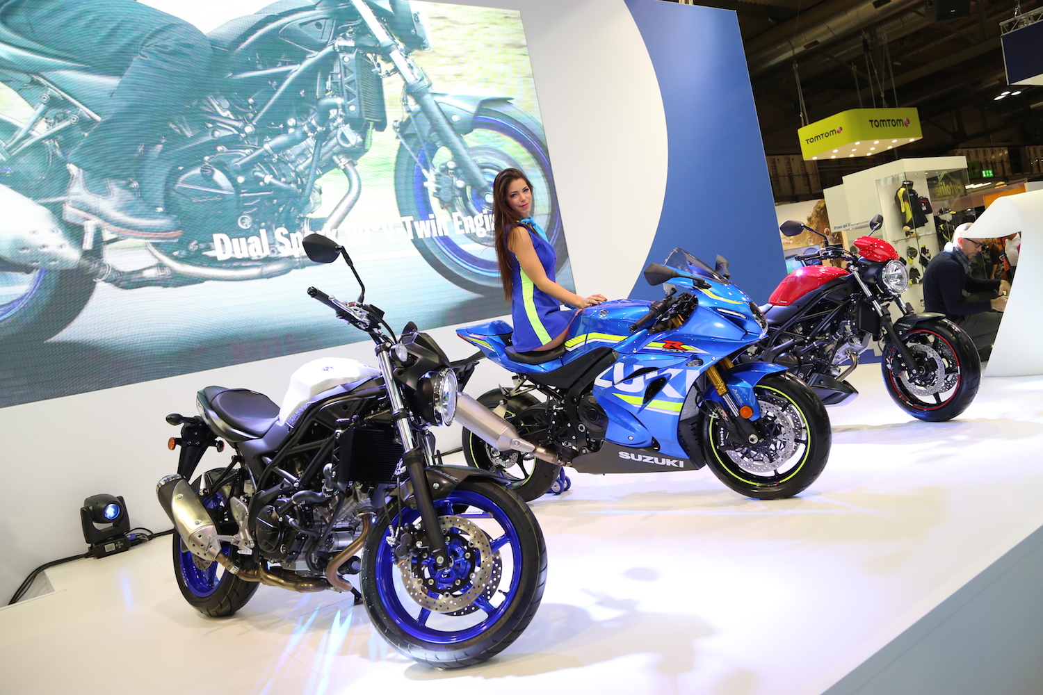 機車界的年度盛會:EICMA 米蘭車展,SUZUKI 雖然沒有如同YAMAHA、DUCATI 或HONDA 這樣舉辦盛大的展前發表會,在展場中也推出令眾多車迷期待以久,曾經稱霸公升級跑車的GSX-R1000,終於以全新的面貌登場了,另外自2009年就由SFV 650 逐步取代的SV650,也在2012年後停產,經過了四年,終於以全新第三世代在現場亮相。