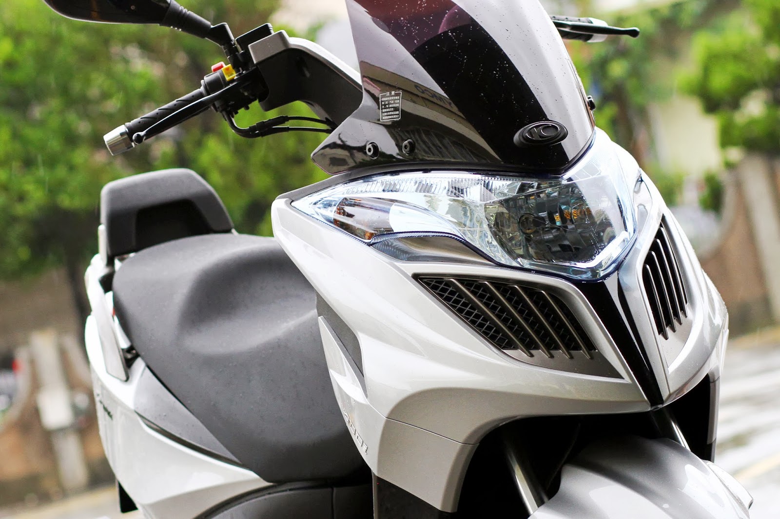 車頭雙鷹眼大燈使用H7 燈炮,採遠近燈獨立的設計,並搭配LED 燈條式定位燈,從正面看去與Racing King 有幾分神似。而整體動感銳利的車頭線條,也讓G-Dink 擺脫以往較為沉穩的外型,顯得更加靈活活潑。