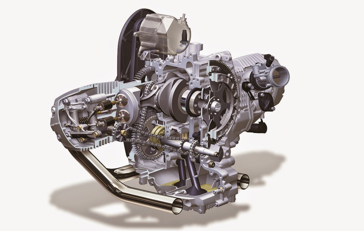 為了發揮水平對臥式引擎的優點,BMW 的摩托車得將引擎直放。