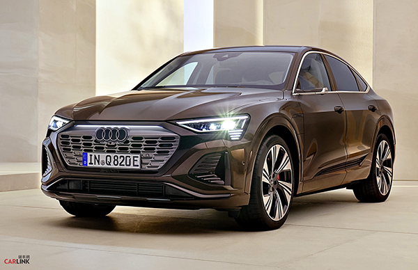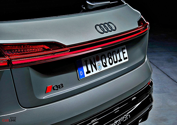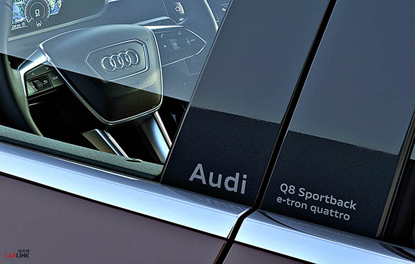 身為四環品牌首款導入全新品牌識別之作,Q8 e-tron 代表著AUDI的「e-volution(電能進化)」。儘管尺寸維持不變,車首品牌logo透過黑色玻璃底面襯托白色四環線條,平面的二維設計呈現優雅的高級質感;車尾車型銘牌則以純黑色呈現,結合B柱的嵌飾品牌標誌與車型名稱字樣,帶出充滿現代感的全新品牌識別。