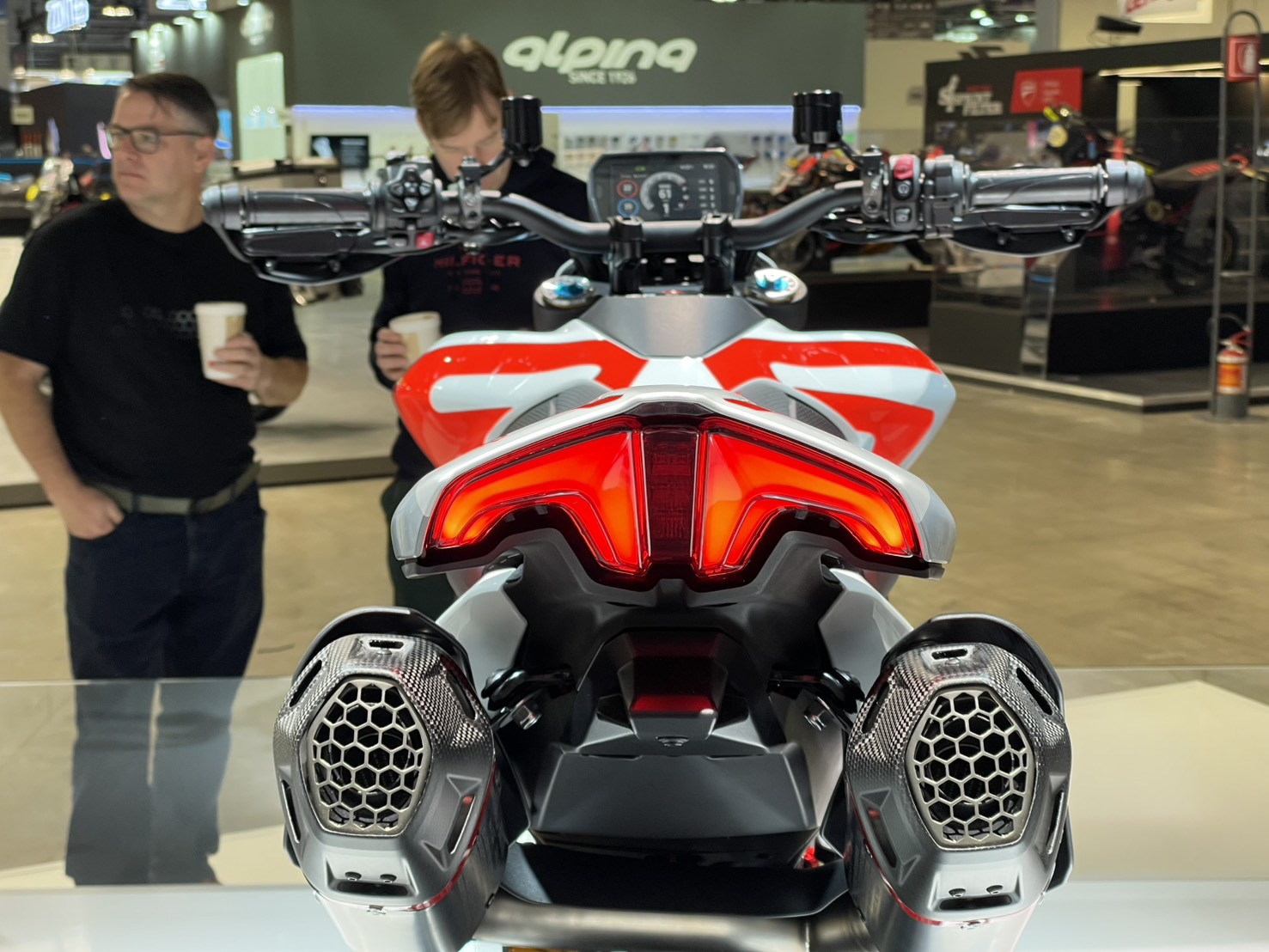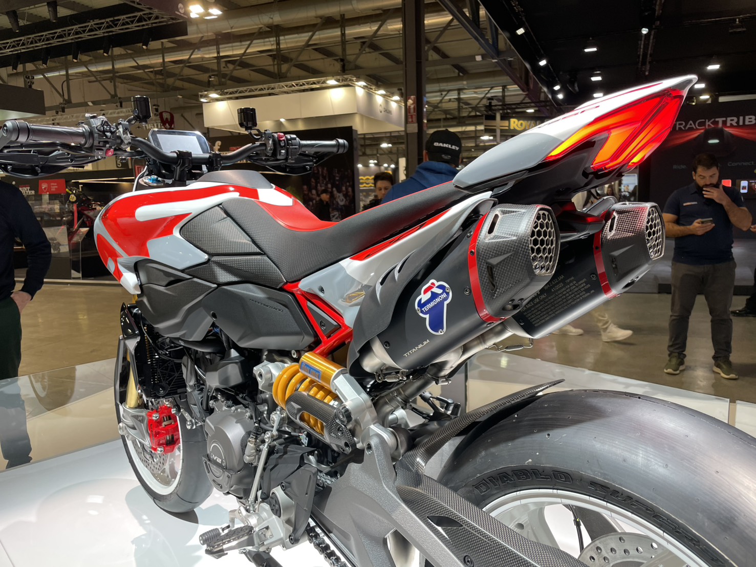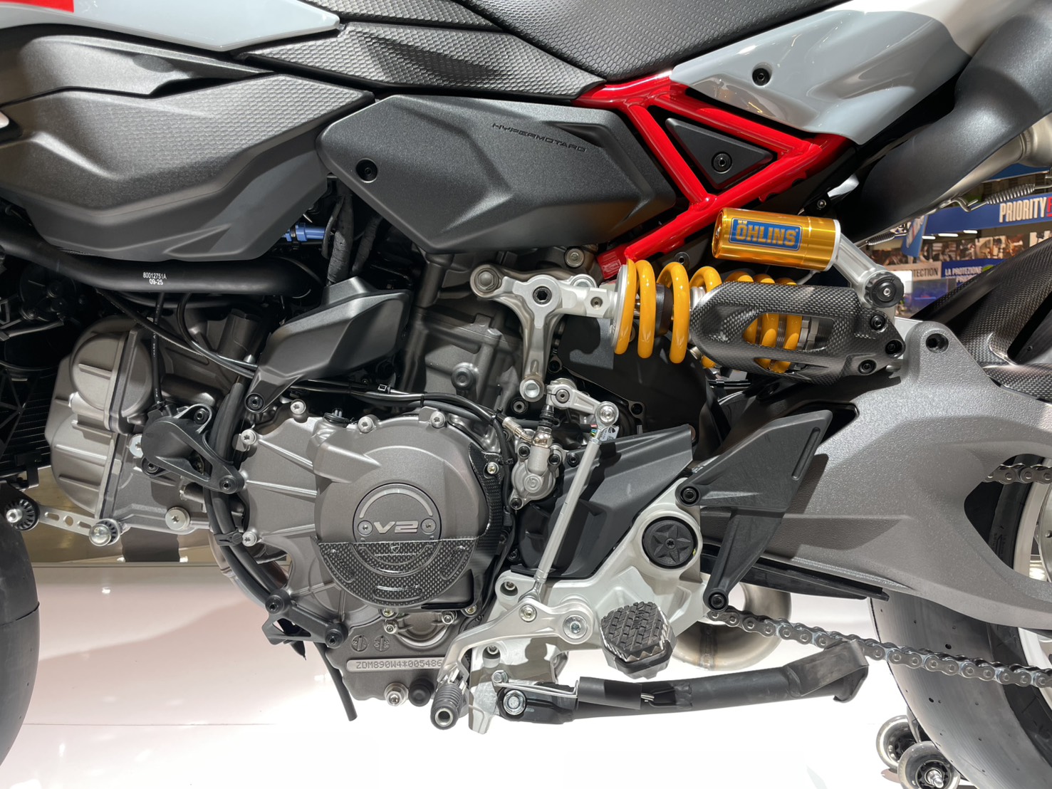 在新車架結構下,後搖臂也更新為鋁製的雙搖臂設計,據稱其造型與強度設計參考了 Panigale V4 的對稱中空理念,旨在提升出彎穩定性與車輪循跡性,讓 Hypermotard 不僅僅是街道的玩具,也具備了更優異的賽道潛能。