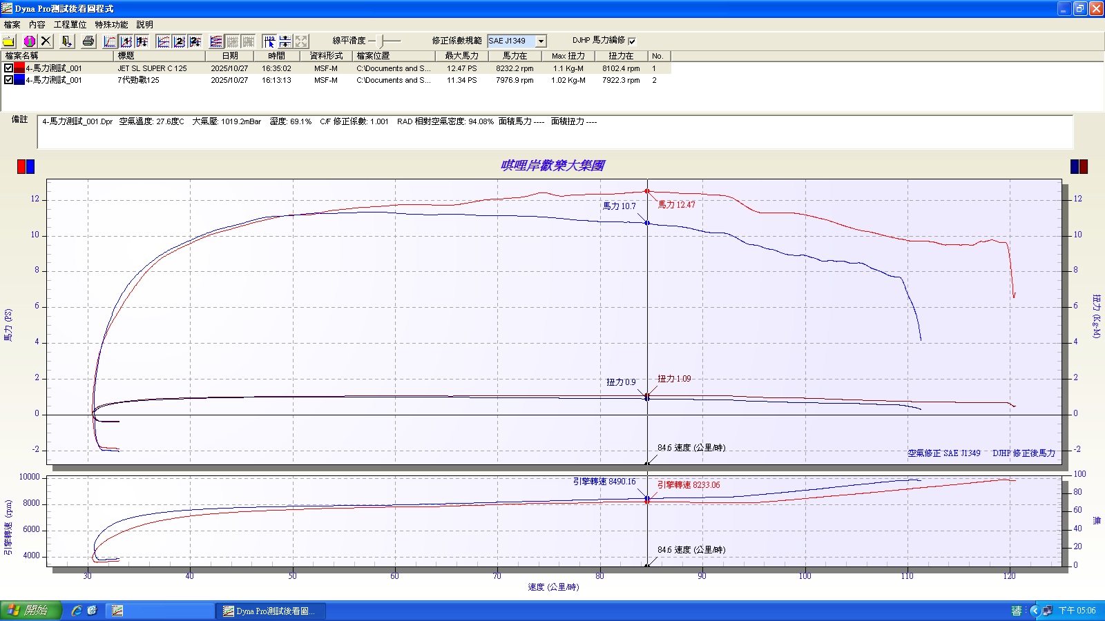 最後,我們將兩台車帶上了馬力機,進行更深入的動力特性分析。從機台上輸出的轉速圖可以發現兩車在不同速域下的表現差異。