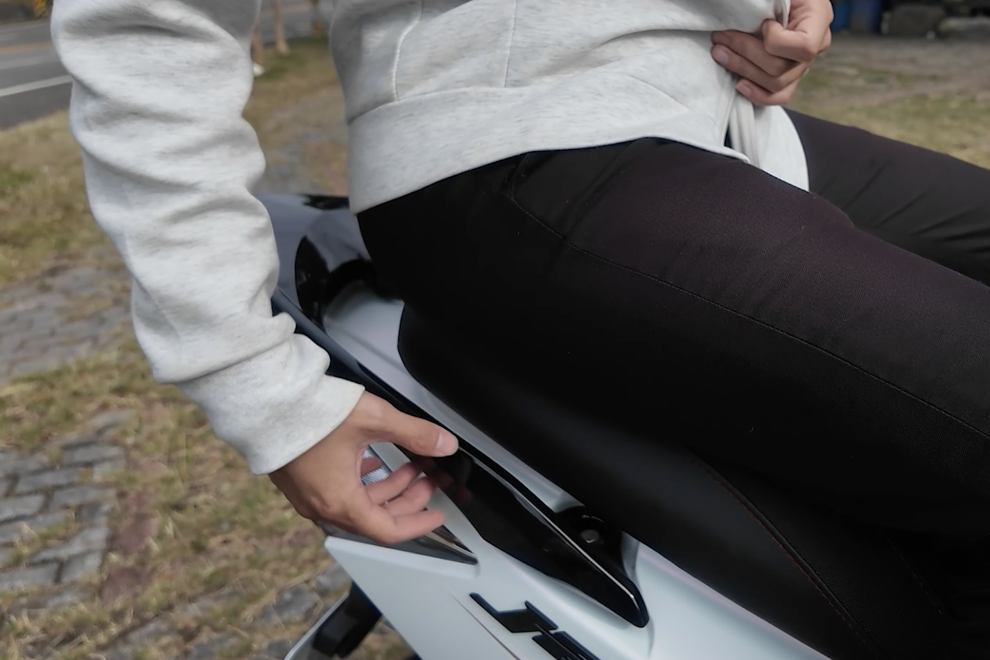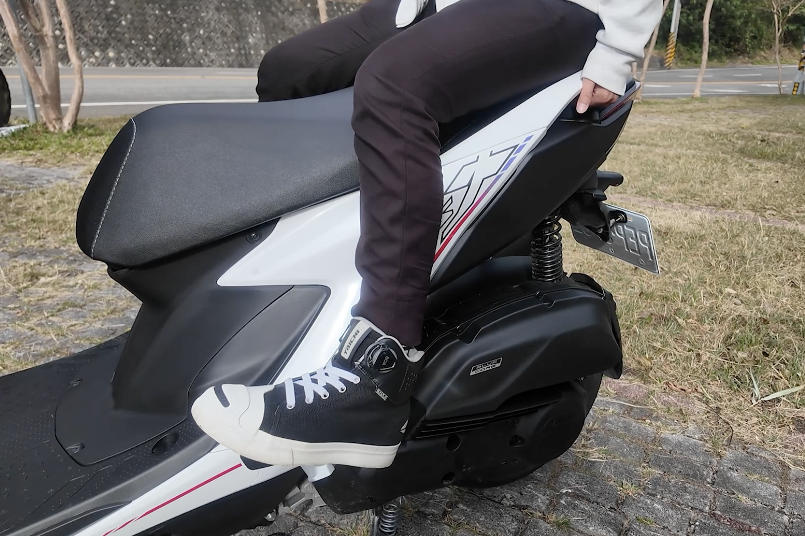 針對雙載感受,我們的同事 Jessica 則分享了她的看法:勁戰七代的後腳踏位置較低且靠前,能讓後座的腳伸得更直,坐姿自然;但車體較寬,大腿需要開得較開。JET SL SuperC 則擁有更自然的雙腳角度,但膝蓋彎曲度略高。特別值得一提的是後扶手設計,勁戰七代的後扶手與車身一體化,握持位置固定;而 SuperC 的後扶手設計與大腿間保有空隙,後座可以更自由地調整坐姿和抓握位置。