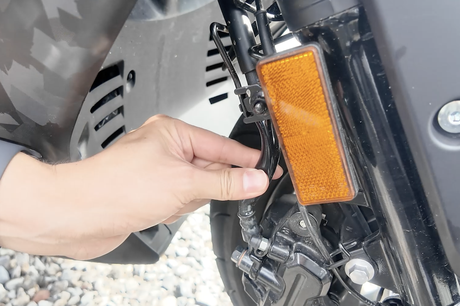 更令雅雅驚豔的是 SuperC 的煞車系統。相較於七代勁戰,JET SL的原廠煞車手感更直接、制動力道更為凌厲。這其中的關鍵在於JET SL原廠就搭配了金屬油管,避免了橡膠油管在大力煞車時可能發生的形變,使煞車力道能夠更完整地傳遞到卡鉗與碟盤上。雖然七代勁戰的卡鉗尺寸看起來更大,但 JET SL的金屬油管配置,使其原廠制動表現遠勝於使用一般橡膠油管的七代勁戰。