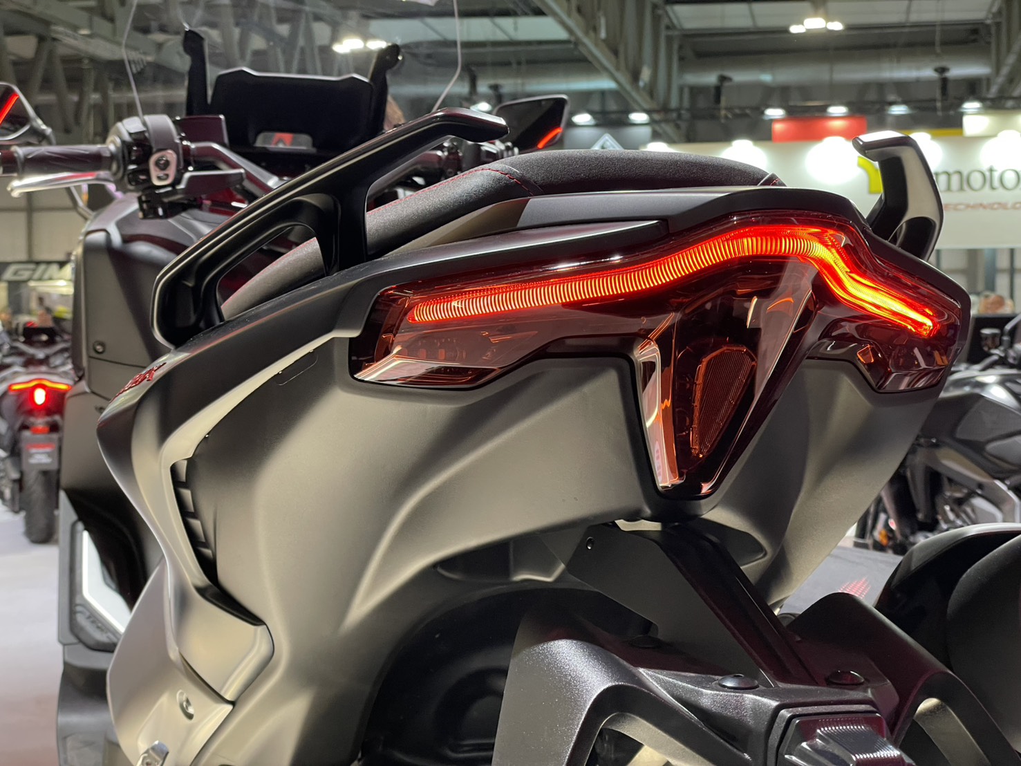 25 週年紀念版在車身配色上採用了與眾不同的設計。它結合了深沉的深灰金屬色與細膩的淺灰金屬色,營造出高對比、高質感的視覺效果。這套配色方案被認為是向 TMAX 歷史上幾款經典特別版致敬,展現了內斂而強悍的運動風格。車輪部分,特別採用了經過精細加工的黑色輪圈,使整車的運動氣息更加突出,同時也強調了其作為高性能車款的身份。